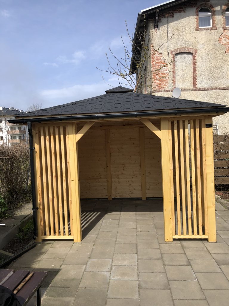 – dach z kantówki 4cm x 9cm oraz 8cm x 9cm